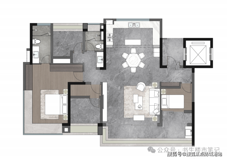 A:不会。这正是新规户型的优势。通过LDKB一体化方厅设计(客厅、餐厅、厨房、阳台一体化),减少了传统走廊的面积浪费。实测样板间,每个房间尺度均舒适,主卧仍可配置独立卫生间,整体空间感优于很多旧规的120㎡户型。