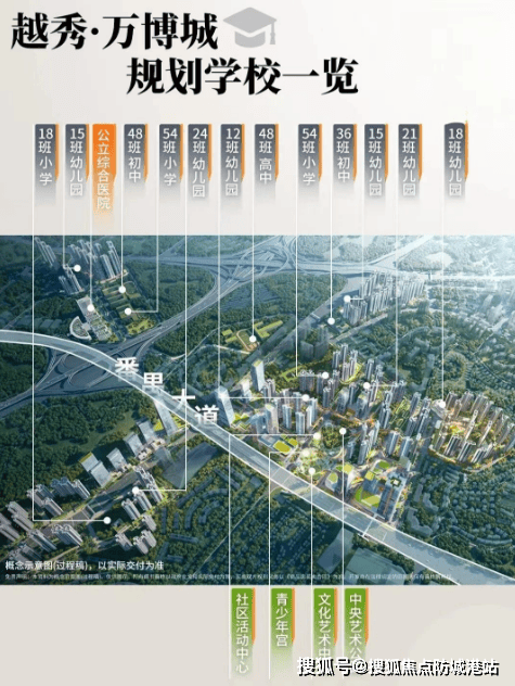 医疗:周边有番禺区第二人民医院、广东省妇幼保健院等三甲医院,项目内部还规划约10万㎡公立南方医科大附属医院,预计2029年交付使用。