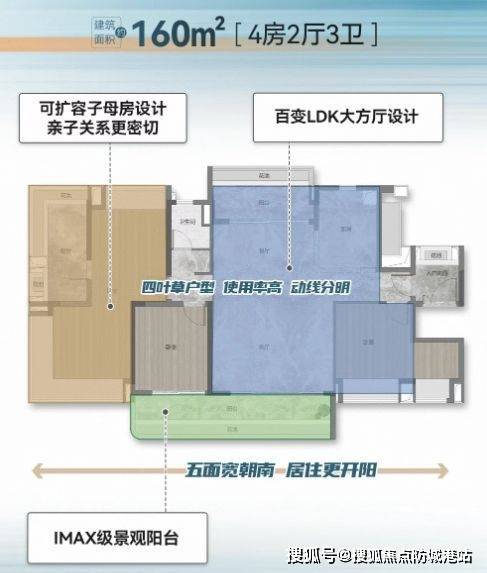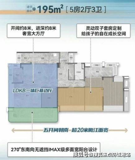 超高层住宅:项目共规划4栋住宅楼,均为37层,采用高低区分设计。低区(3-24层)为2梯4户,包括95-120-160平方米户型;高区(25-37层)为2梯3户,包括120-160-190平方米户型。高区与低区电梯分开,提升了居住舒适度。