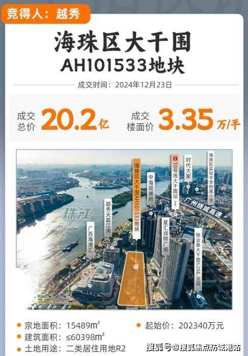 2024年12月23日,越秀地产以20.23亿元的价格成功拿下广州市海珠区大干围地块,楼面价为33501元/㎡。该地块原为商业用地,经过调整后转为住宅用地,并迅速吸引了市场的广泛关注。本文将详细介绍这一备受期待的项目——越秀江湾潮起的基本信息、交通配套、教育资源、生活设施及户型设计等方面,帮助读者全面了解这个位于珠江后航道畔的高品质住宅项目。