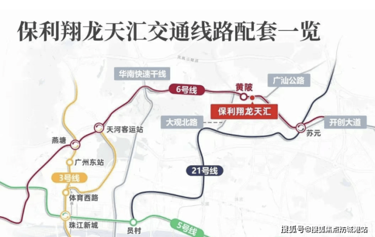保利翔龙天汇的交通优势堪称板块内翘楚,地铁网络与路网系统交织,轻松实现湾区穿梭。项目与地铁6号线黄陂站直线距离仅400米,步行即可抵达,1站进入天河,6站至天河客运站换乘3号线,直达珠江新城等核心区域,无需多次换乘,通勤效率远超同板块其他项目。