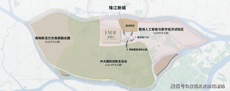 根据穗规划资源函〔2024〕128号文,海珠区将打造"一轴三区多节点"空间格局,项目所在琶洲南TOD板块被定位为"数字经济与人工智能产业集聚区"。对比周边竞品: