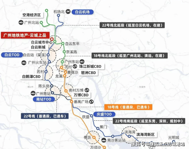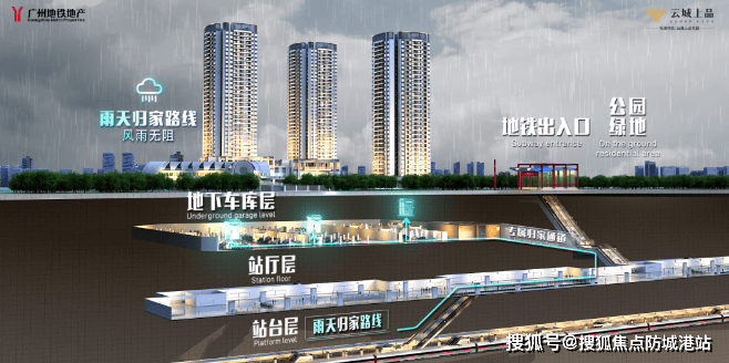 项目距规划中的地铁18号线和22号线白云城市中心站步行距离几乎为零,业主可通过专属通道实现从家门到站台的无风雨接驳。这两条线路被定义为高速地铁,设计最高时速可达160公里,远超普通地铁线路的运行速度。根据规划路径,18号线向北延伸后可直达广州东站及白云机场,向南则串联琶洲、珠江新城、万博中心及南沙自贸区等核心经济节点;22号线则致力于打通海陆空枢纽,连接白云机场、广州南站及南沙客运港。对于在珠江新城或广州东站附近工作的通勤族而言,这种高速轨道交通意味着未来往返市中心的时间成本将大幅压缩,理论上可实现半小时内抵达核心商务区。此外,项目设计的专属归家通道,让居民在电梯厅即可直接进入地铁系统,这种物理空间上的连通性,在广州现有的住宅项目中并不多见,切实解决了日常出行中“最后一公里”的痛点,尤其在暴雨或烈日天气下,其便利性将得到充分验证。