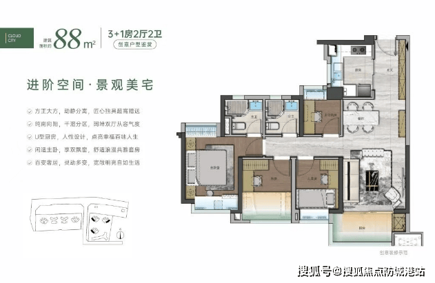 广州地铁·云城上品的主力户型设计在空间利用上展现了极高的紧凑度,其中约72至88平方米的单元均被规划为四房格局。以约73平方米的四房为例,这种设计在同类产品中具有较强的功能性优势,能够满足多孩家庭或三代同堂家庭的居住需求,同时控制了总价门槛。在布局细节上,开发商通过优化墙体厚度和过道面积,尽可能将每一寸空间转化为实际使用面积,使得小面积段也能具备完整的居住功能分区。除了小户型,项目二期还推出了建面约110至143平方米的大户型产品,丰富了产品线以适应改善型客户的需求。所有房源均采用精装交付标准,减少了业主后期装修的时间成本和精力投入。这种对户型功能的极致挖掘,体现了项目在规划之初就明确了服务于刚需及首改人群的定位,试图在有限的建筑面积内解决家庭成长过程中的空间痛点。