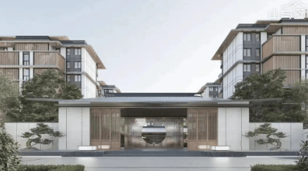 山与墅项目在建筑设计上撷取了中式建筑的精粹,并糅合了现代设计语境。立面采用三段式构图,结合双重批檐、大挑板、格栅等元素,选用钢化玻璃面和铝板等高端材料,营造出优雅的大雅院境。规划借鉴传统“梳式布局”及“冷巷”等手法,师法余荫山房规制,打造“一环一轴、两园两带、七重归家境、九雅八趣”的场域空间,形成多重院落礼序,创造出可居可游可赏的园居空间。