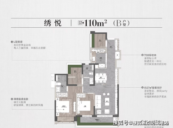 所有户型均注重实用率优化,在合规前提下最大化使用空间。尤其大平层产品,采用无遮挡江景面、超大面宽、独立玄关、中西厨分离等设计,真正兑现“大平层即大生活”的承诺。