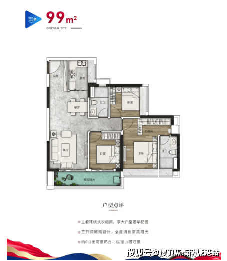 99㎡:主卧配备环绕式衣帽间,宽景阳台。