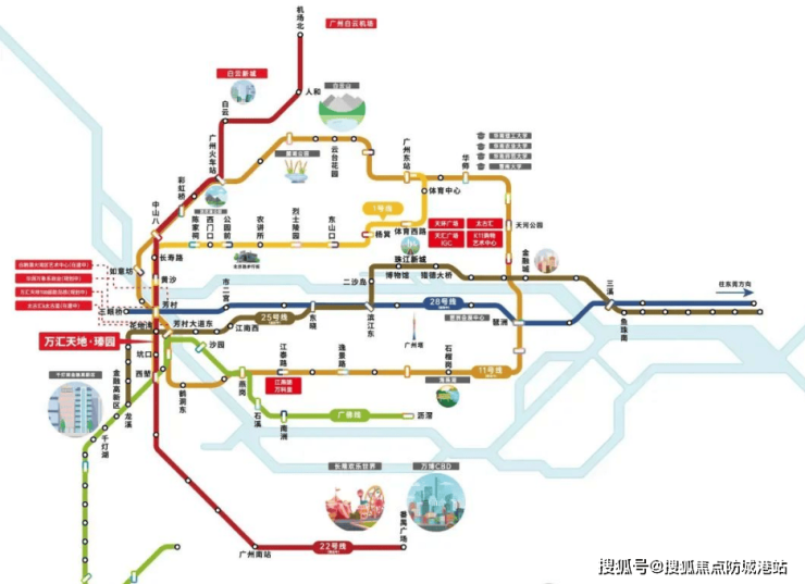 优越的地理位置:项目距离地铁1号线、25号线交汇的花地湾站约800米,步行仅需12分钟。通过地铁1号线一个站点即可到达芳村TOD,可换乘11号线和22号线,方便快捷地前往广州各区。此外,周边有多条主要道路如花地大道、龙溪大道,自驾出行也非常便捷。