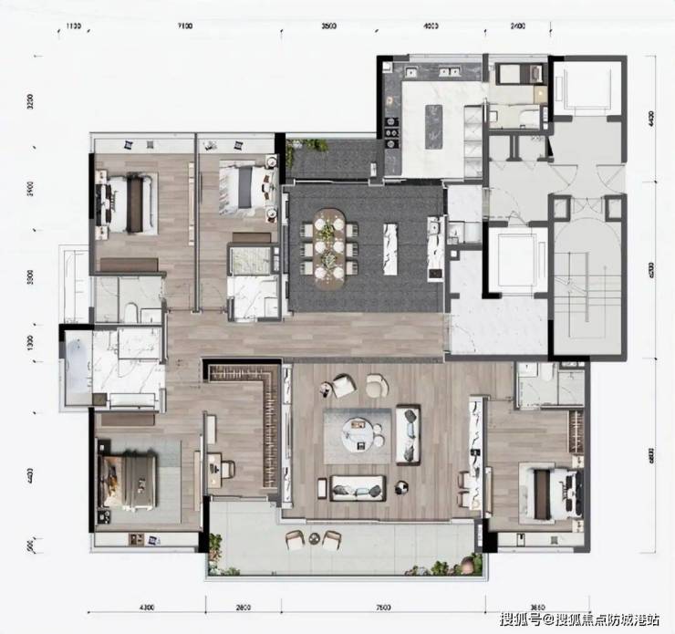 主力户型与装修:200-350㎡奢阔大平层,国际一线精装现房