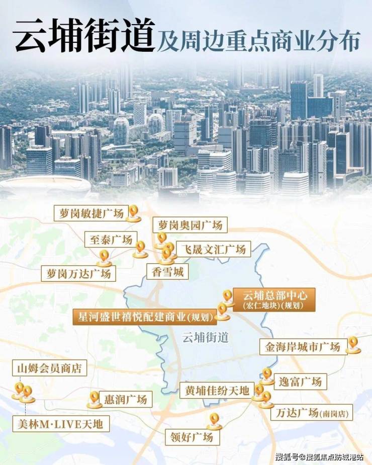 项目地处广州的核心商圈,周围拥有多个大型商场,如萝岗万达、星际云汇等,提供了丰富的购物、娱乐和休闲选择。家门口即是庞大的商业圈,日常生活便利性可见一斑。