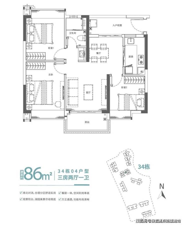 户型亮点:方正格局,动静分离,得房率超80%;主卧带飘窗,次卧连通阳台,空间利用率极高;明厨明卫设计,通风采光俱佳。