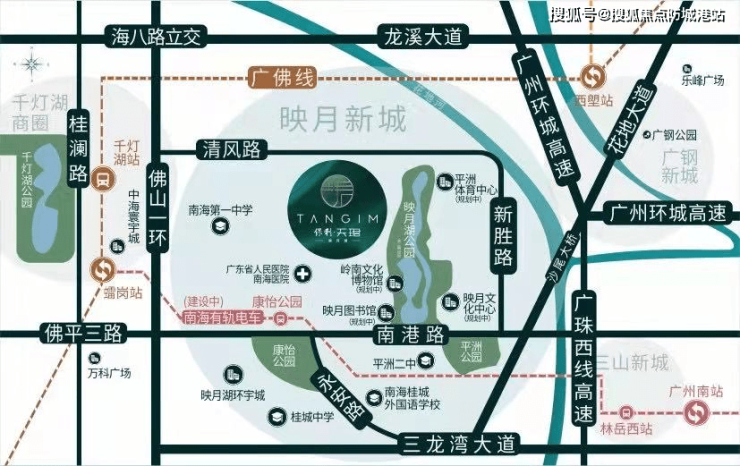 五条轨道畅达广佛:南海新交通、广佛线、佛山7号线(规划中)、广州10号线(规划中),广州19号线(规划中)。约10分钟到千灯湖,约15分钟可达佛山禅城、广州南站,约30分钟可到达广州中心区,真正实现广佛同城。