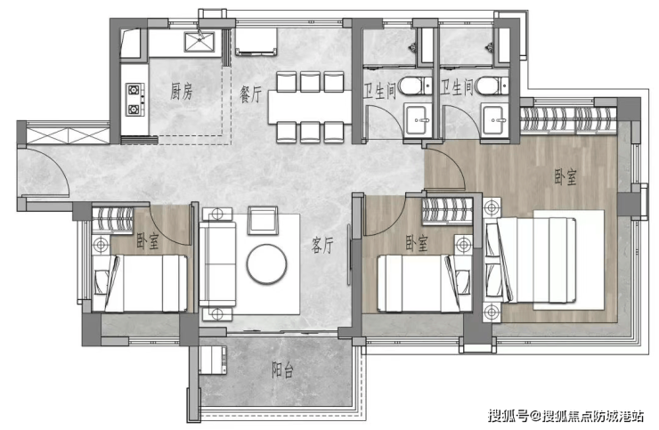 85㎡三房两厅两卫:累计备案 440 套,去化率 88%,位列南沙区同类户型销量第一