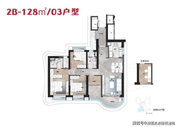 125㎡四房:LDK一体化设计,江景阳台长7.2米,总价约750万起;