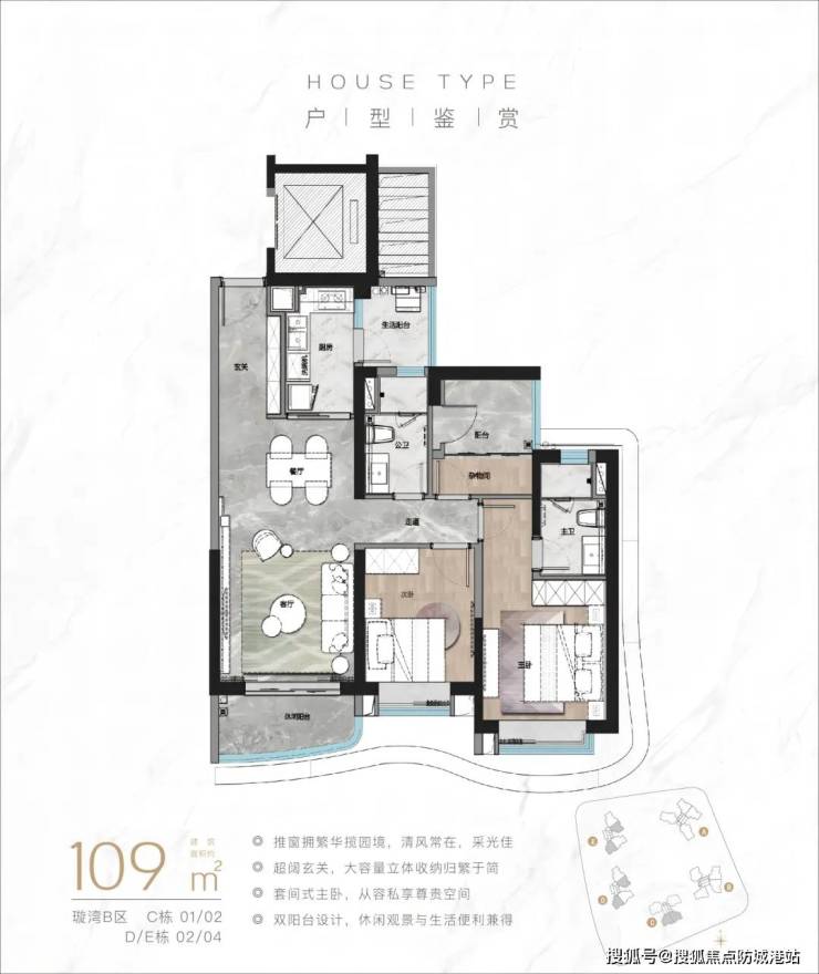 三居:109㎡(总价585万起,东南朝向);