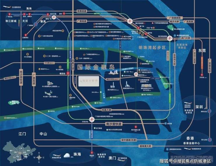 项目东侧为IFF国际金融论坛、广交所、南沙世界之心、金融创新中心等地标性建筑为代表的金融地标集群,与项目“147米”高度住宅地标,遥相呼应。