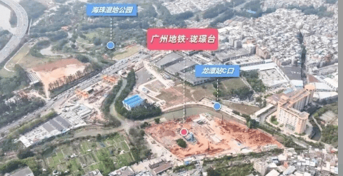 项目楼下即是地铁11号线(在建)与18号线龙潭站B出口,步行距离仅约132米,通过地下连廊可实现无风雨步行直达地铁站,真正意义上的双地铁上盖,1站琶洲、2站珠江新城,通勤效率冠绝全城。