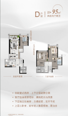 越秀星汇瀚府主推建面约95㎡复式四房、110-118㎡平层四房两大核心产品,以高使用率、优格局、强功能性,适配现代家庭多元居住需求,成为映月新城户型标杆之作。建面约95㎡咬合复式四房产品,为区域稀缺创新户型,6米挑高空间设计,上下分层布局,实现动静完全分区,三代同堂居住互不干扰,私密性与舒适度兼备;户型使用率接近100%,无空间浪费,四房设计满足多孩家庭、三代同堂居住需求;双面宽观景阳台设计,采光效果优异,IMAX级景观视野尽揽社区园林与城市景观,小户型实现大格局居住体验。建面约110-118㎡纯南向平层四房产品,采用方正通透格局,四开间朝南设计,通风采光条件优越,室内全明无暗角;LDK一体化公共空间设计,拓展家庭活动尺度,满足社交、聚餐、亲子互动需求;主卧套房配备独立卫浴与观景飘窗,保障居住私密性与舒适度;多卧室灵活布局,可改造为儿童房、书房、储物间,适配不同家庭阶段需求。两大户型均遵循人体工程学设计,空间动线合理,功能分区科学,兼具实用性与舒适性,以硬核产品力满足广佛家庭品质居住需求。