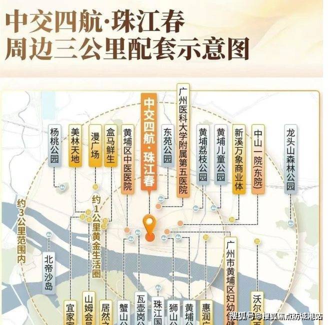 商业休闲配套完善。3km 半径内有宜家家居、山姆会员店、美林 M・LIVE 天地购物中心等众多商业配套,满足各种消费需求。30 分钟可享珠江新城商圈、天河城 - 太古汇商圈世界级商圈奢华配套,休闲娱乐选择多样。医疗配套也很给力,紧靠中山一院东院、广州医科大学附属第五医院、广州市黄埔区中医院等多家优质大型三甲医院,为居民健康保驾护航。项目不仅面朝珠江,还有蟹山公园等约 10 万㎡公园环绕,1.2 公里滨水景观长廊打造樱花水岸及夜光跑道,生态环境优越,居住舒适度高。