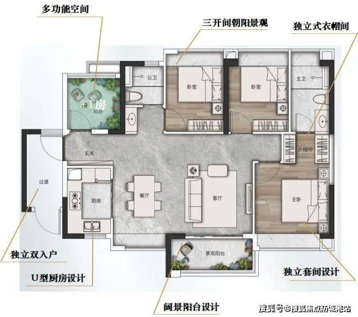 零过道设计 / 主套带衣帽间 / 全南向观景阳台