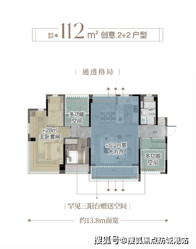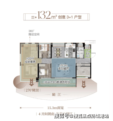 项目主力户型为87-134平方米的三房和四房,户型设计合理,空间利用率高。整体空间使用率超过110%,部分户型接近120%。例如,建面约112平方米的户型,拥有近5.2米的大方厅和三阳台高拓设计;建面约132平方米的户型,则带有大跑道式阳台,居住舒适度极高。