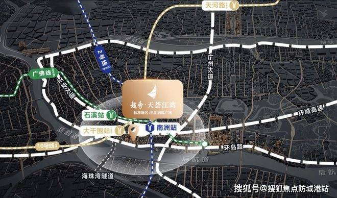 交通方面项目做得相当友好。三条地铁线路环绕,2号线南洲路站、广佛线石溪站都在1公里左右,10号线大干围站在建中,距离约800米。10号线通车后,从这里坐地铁5站就能直达体育西商圈,日常通勤去天河、越秀都很顺畅。开车也很方便,距离内环路入口仅1.3公里,快速连通广州各大核心区域,早高峰也不用太焦虑。