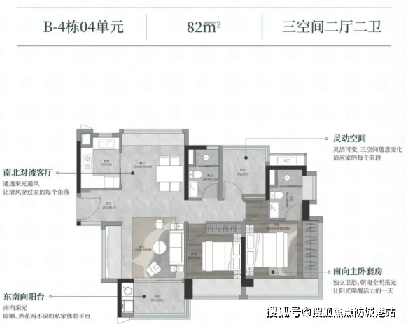 本次加推的高层江景新品,仅30席,堪称白鹅潭板块的“断货王”。建面约82㎡三房户型,不仅全系南向、南北通透,更罕见地配置主卧套房,功能齐全,空间高效。尤为难得的是,该户型位于B-4栋04/05单元东南侧单边楼栋,高层(23-32层)可一线望白鹅潭江景,将珠江壮阔水景尽收眼底。