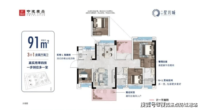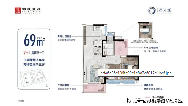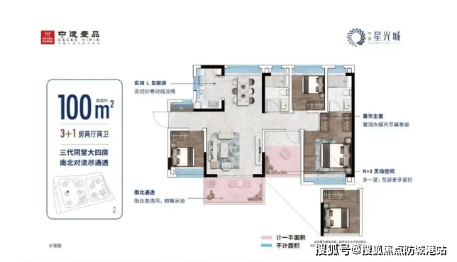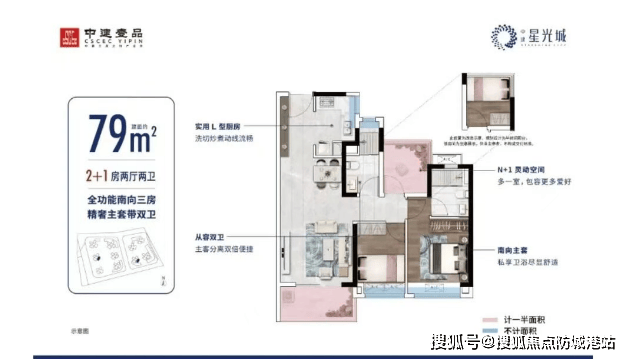 中建星光城推出多种户型供不同需求的家庭选择,涵盖约80㎡至120㎡的两至四房户型。所有户型均采用全南向设计,保证充足的采光和通风。以下是几种典型户型推荐:
