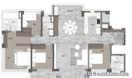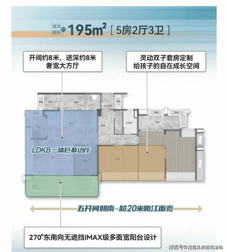 建面约160㎡四空间两厅两卫(江境):五开间朝南设计,搭配南北双阳台,实现通透对流,南向双套房布局,保障家庭成员的居住私密性与舒适度。一体化巨幕客厅空间开阔,可满足家庭聚会、圈层社交等多元场景需求,大面积玻璃幕墙设计,让江景与室内空间无缝衔接,尽显滨江豪宅的气派与质感。