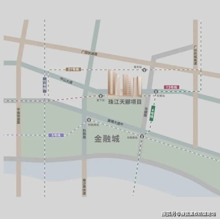 珠江天郦占据金融城北区核心地段,实测交通数据显示: