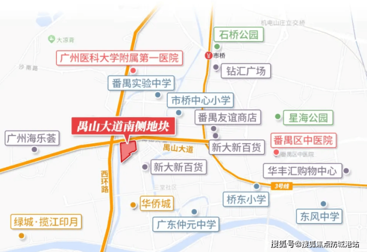 目前,项目周边的交通网络已经十分成熟。步行约1.7公里即可到达地铁3号线市桥站。3号线作为广州的“南北大动脉”,串联起了天河、海珠、番禺三大核心区。从市桥站出发,1站即可到达番禺广场,这里是番禺新的行政和商业中心;换乘7号线,2站即可到达万博CBD,这里是广州南部的经济引擎,汇聚了众多世界500强企业和高端商业综合体;3站直达海珠区,8站便能抵达珠江新城。对于在天河、海珠上班的白领来说,这样的通勤时间完全可以接受,甚至优于许多居住在市中心老破小的居民。