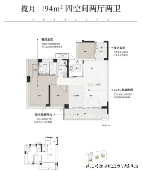 建面94㎡四房两厅两卫:成长家庭的“全能选手”