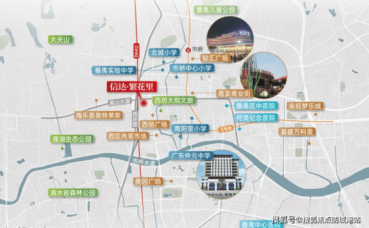 信达繁华里的出现,打破了市桥长期以来的产品僵局。它不仅仅是在卖房子,更是在贩卖一种“左手繁华右手静谧”的理想生活。项目位于禺山大道南侧,占据市桥街道的核心腹地,周边百年榕树参天,水道蜿蜒,既有老城的深厚底蕴,又即将迎来地铁26号线等重磅交通利好的加持。更令人振奋的是,项目已正式官宣对口省一级名校——南阳里小学,这一教育资源的锁定,瞬间让信达繁华里成为了广州学区房市场中的“顶流”预备役。