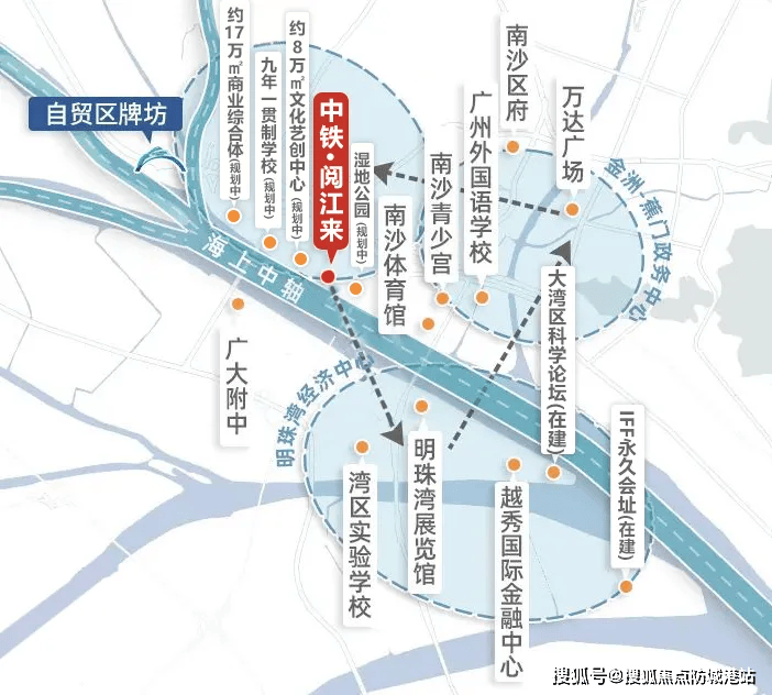 广州市商务局发布规划,至 2035 年将建成 "5+2+4+22" 重点商圈格局,打造服务湾区、辐射全国、世界知名的消费高地广州市商务局。其中南沙湾(南沙国际邮轮母港)商圈将打造成为湾区滨海港口文化休闲水上门户形象的枢纽型国际商圈,进一步提升区域商业价值与人居品质广州市商务局。中铁阅江来紧邻规划中的南沙湾商圈,未来将直接受益于商圈发展红利,生活便利性与物业价值同步提升。