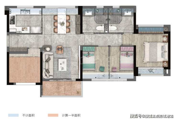 户型设计是泰丰千语庭的一大亮点,采用全点式户户朝南设计、栋法线错开布局,超奢华尺度楼设计,视觉无遮挡,采光通风效果极佳。83-108㎡的国家专利户型,同等面积多一房,五开间朝南,高达96%使用率,创新双孩房设计,南北对流主卧,很好地解决了传统户型使用率低、采光差、空间拥挤等痛点。
