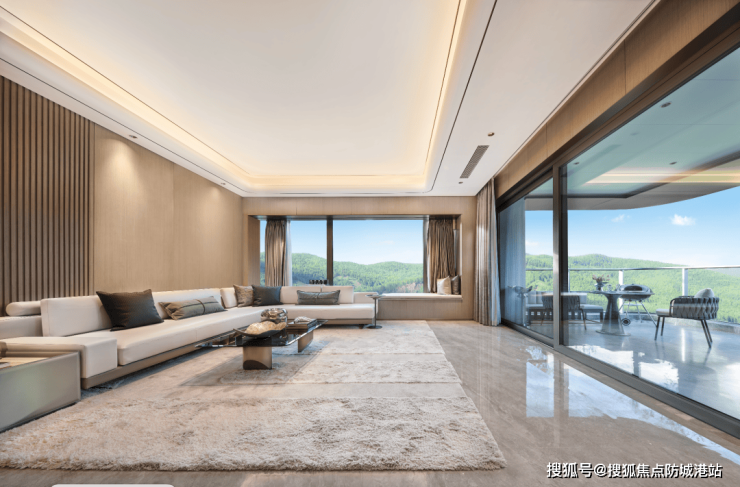 广州首创约50㎡奢阔景观双阳台,打造出约20米连续采光面,将窗外山景魅力放大,再放大。