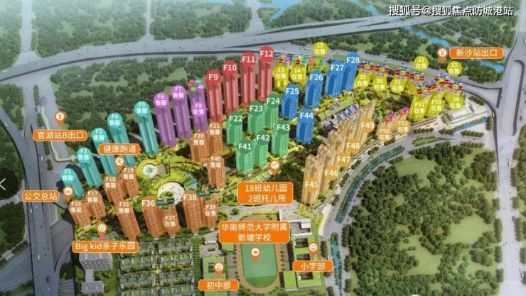 项目位于13号线地铁官湖、新沙地铁站上盖,通过地铁,一小时即可通勤至珠江新城。