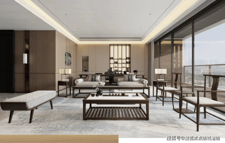 建筑设计赋予“风帆”造型,外立面臻选豪宅专属双层LOW-E玻璃与铝板幕墙。独特的“金丝镜框式”窄边框立柱与巨幕弧面玻璃的结合,与江景无界,独享雍容生活。