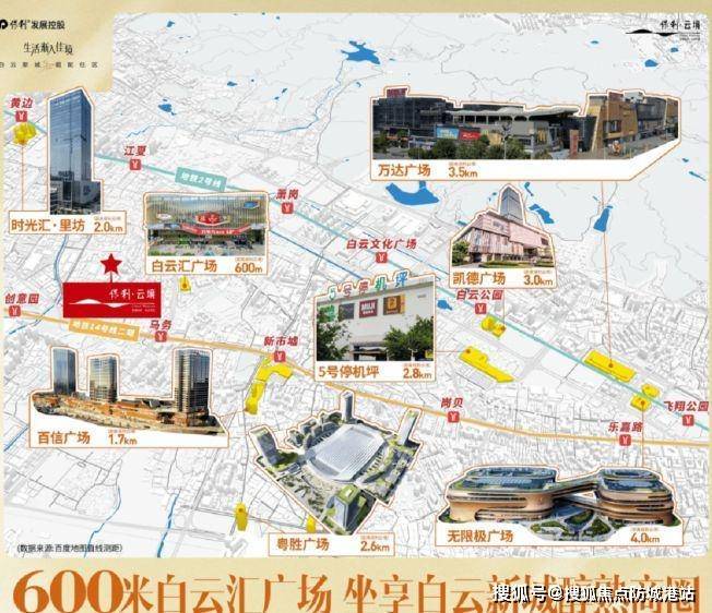 近距离商业:直线约 600 米即达白云新城核心商圈之一白云汇广场,1 公里范围内还有 YH 城购物中心与白云汇广场两座超 10 万平的大型商业中心,满足居民日常购物、餐饮、娱乐等基本需求。