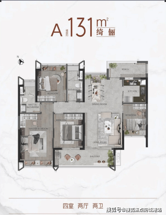 针对改善型客户,珠光海珠新城推出了131平方米的四房两厅两卫户型,总价500-520万元。该户型最大的亮点在于采用了南北对流的设计,通风效果极佳,常年保持室内空气清新。根据朝向的不同,又细分为两种风格。一种户型的主阳台朝南,三个卧室也全部朝南,这种“四开间朝南”的布局,让冬日里的阳光可以洒满整个房间,温暖而舒适,非常适合喜欢晒太阳的老人和孩子。另一种户型的主阳台朝北,正对着壮观的海珠湿地公园,景观视野无与伦比。虽然两个卧室朝南、两个卧室朝北,但这种布局让家庭成员既能享受到阳光的温暖,又能欣赏到湿地的秀美,各取所需,互不干扰。宽敞的空间设计,让多代同堂的家庭也能住得舒舒服服,每个人都有自己的独立天地。