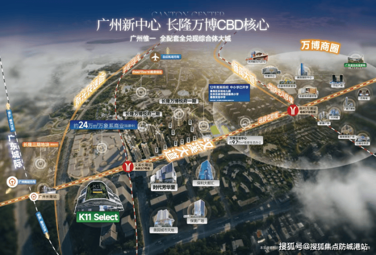 华润万博悦府处于万博CBD千亿商业圈核心,1KM范围内聚集了湾区首座K11 Select、万达广场、天河城百货、海印又一城等10余家大型商业综合体,商业总建筑面积超200万㎡,是广州南部商业最繁华的区域之一。其中,湾区首座K11 Select已于2025年12月开业,总建筑面积约12万㎡,引进了300余家品牌商户,其中首店品牌占比达45%,开业首日客流量突破8万人次,成为区域商业新地标;万达广场作为万博板块成熟商业综合体,日均客流量达5万人次,涵盖购物、餐饮、娱乐等多元业态,满足日常消费需求。
