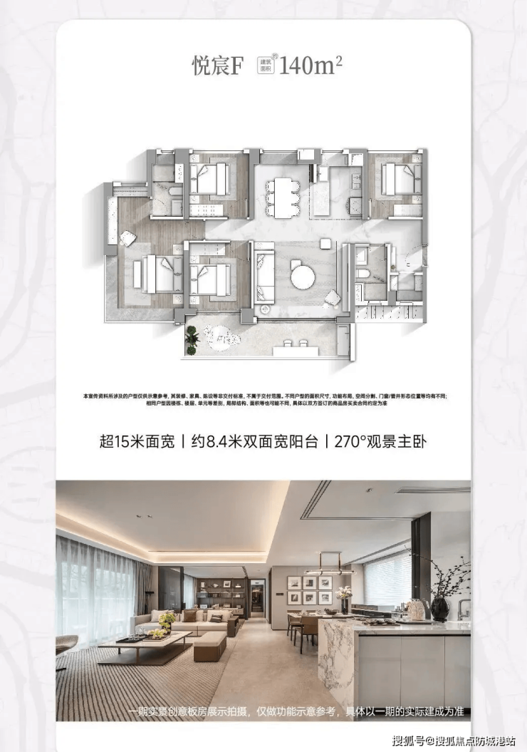 300㎡悦云户型则定位终极改善,双主卧套房设计,满足多代同堂家庭的私密居住需求;配备空中酒窖、私人雪茄房,彰显高端生活品质;270°全景舱设计,采用无遮挡柱设计,视野开阔,将江景、园景、城市景观尽收眼底。此外,项目当前主推的建面约180㎡户型,玄关拼花及石材背景墙营造满满归家仪式感;超80㎡的超级家庭核心区,通过洄游动线设计,实现厨房、餐厅、客厅、阳台的顺畅衔接;南北双阳台设计,一侧静享内部园林静谧,一侧俯瞰CBD繁华,生活阳台可灵活打造成阳光茶室、书房等多元空间;双主套设计给予夫妻双方同等的尊重与私密,主卧配置五星级酒店式主卫,涵盖双台盆、独立浴缸等高端配置,在瞰景窗边泡澡即可卸下一天疲惫。