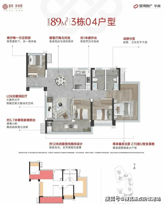 ▶ 89㎡ 四房:南沙罕见的南北对流+四开间朝南