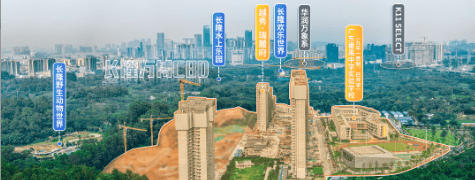 答:项目紧邻长隆旅游度假区与飘峰山,高层可瞰长隆景观,内部拥有11万㎡七大洲主题园林。