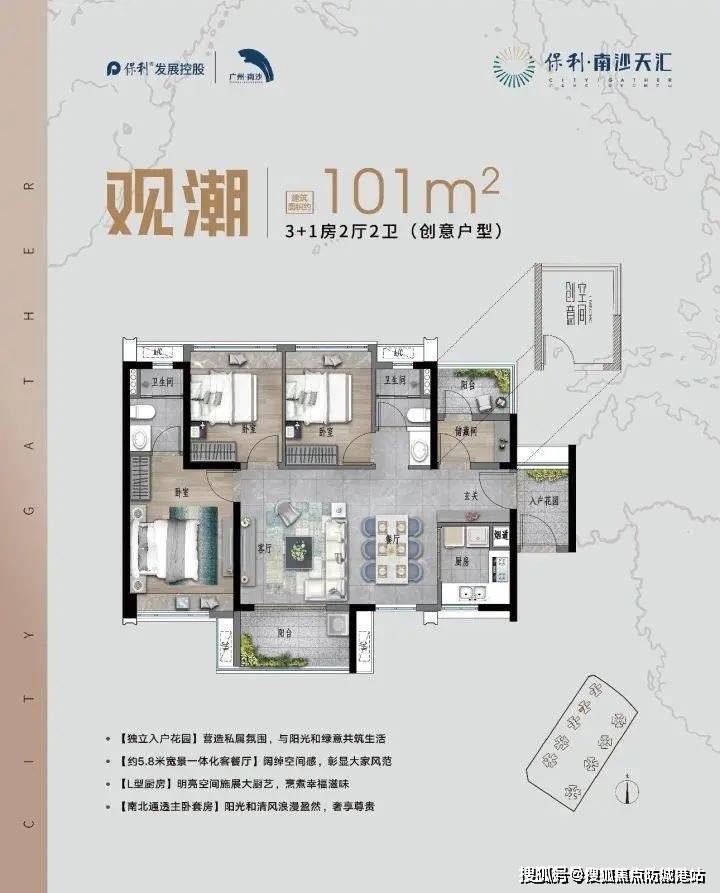 设计亮点:三开间朝南,3.6米开间阳台直面蕉门河景;主卧配备独立卫浴及飘窗,私密性极佳;灵动空间可打造为衣帽间或健身房。