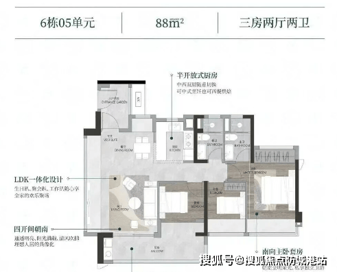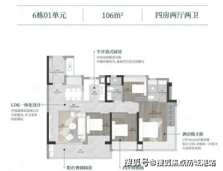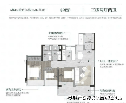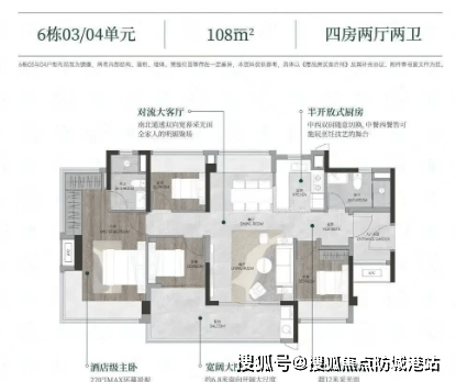 特色设计包括全南向布局,阳台尺寸较大,所有户型均采用新规设计,使用率较高。