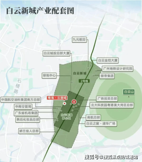 粤海·云港城位于白云新城CBD中轴线上,紧邻地铁2号线白云公园站(仅200米),距离在建的12号线白云文化广场站仅800米。四横四纵的立体路网使得项目能够快速通达珠江新城、主城核心圈及白云国际机场。此外,项目周边云集了南航、无限极、华为等知名企业总部,形成了一个高端商务、国际化的生活圈层。