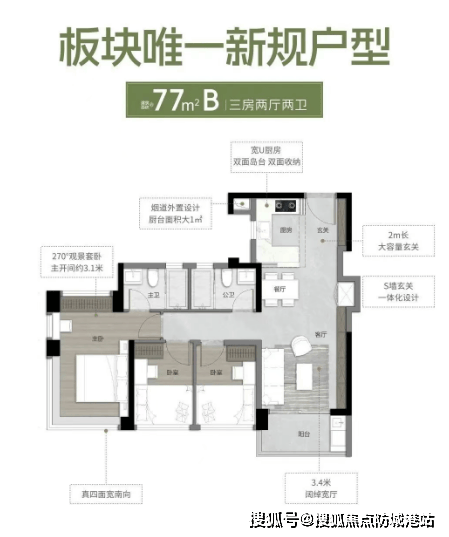 万科·檐屿城主推建面约77至135平方米的三至四房户型,实用率超过120%,部分户型甚至高达138%。通过优化空间布局,最大限度地提升了居住空间的实际利用率。例如,部分户型采用了零飘窗设计和大阳台开间,增加了室内的有效使用面积;同时,客厅、餐厅、厨房、阳台一体化的设计增强了家庭成员之间的互动空间,提升了居住体验。多种变异户型满足不同家庭的需求,每个细节都体现了设计师的匠心独运。