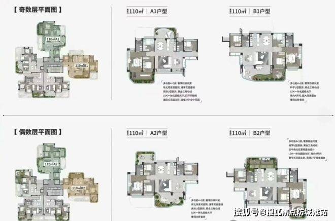 户型面积:82㎡-110㎡-125㎡三至四房