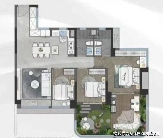 40%的户属空中花园设计:这些赠送面积不计入产权面积,提升了实际使用面积,实用率高达140%以上。